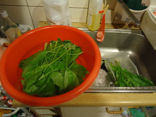1.先把菠菜用自來水沖洗一下,再用食用小蘇打泡過消毒。