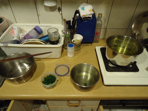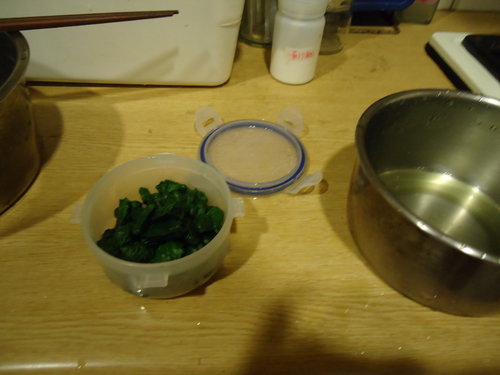 3.煮完後用冰水泡過冷卻一下,再拿出萬能的雙手把菠菜捲成一顆顆的飼料!