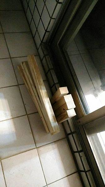 ↑拿到角材,找一個良辰吉日加工,因為是素材,表面有點「粗躁」,先塗一層薄薄的底漆,烤肉XD,今天晚上工作結束。