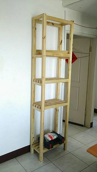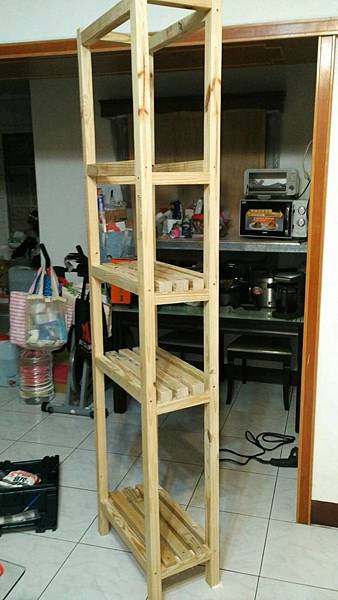 身為台灣勞工的我,用下班時間做一些家事,是理所當然,家裏冰箱和流理台之間有個距離,原放不高的塑膠架,但以有劣化傾向,想換掉!就決定用實木架來取代。